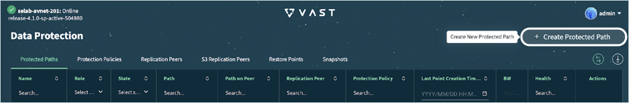 - Navigate to Data Protection > Protected Paths. Click + Create Protected Path.